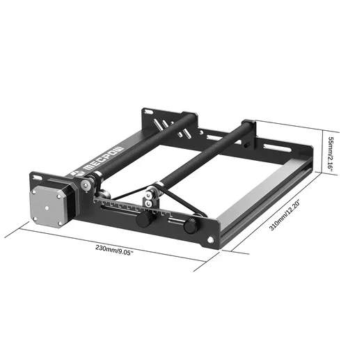 Met deze Product Rotary Roller kunt u vrijwel alle cilindervormige voorwerpen graveren. De rubberen rails waar het product op ligt, zijn namelijk aanpasbaar in breedte. Is uw product zo groot dat het de laserkop raakt? Dan kunt u met de meegeleverde metalen pootjes uw graveermachine verhogen!